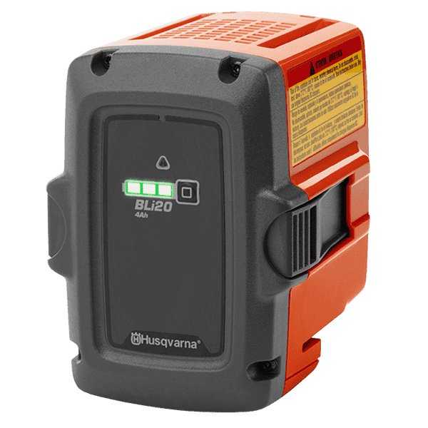 Batería de Li-Ion de 36 V, con una potencia de 151 W/h y una capacidad 4 Ah. El modelo BLi 20 fue diseñado para lograr un alto rendimiento en los equipos de la Serie 100 con un peso reducido 1,22 Kg y una vida útil de 400 ciclos. También presenta un indicador LED para identificar su estado. Compatible con los cargadores QC 80 y QC330(No esta incluido en los equipos), e indicado para todos los equipos Husqvarna a batería.