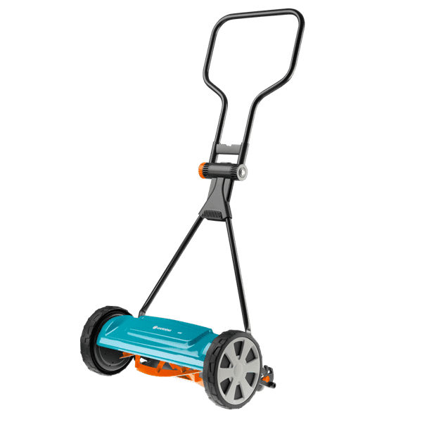 • Eco-friendly, a empuje. • Tecnología de corte precisa. • Plegable para fácil guardado. El Cortacésped helicoidal 400 GARDENA funciona sin electricidad y no perjudica al medio ambiente. El funcionamiento es sencillo: a medida que empuja, el cilindro de corte y la cuchilla inferior se mueven sin contacto. Similar a unas tijeras, la hoja de hierba se levanta y se corta. La característica especial: el cilindro de corte y la cuchilla inferior no se tocan y por lo tanto permitir que el trabajo sea agradable, más fácil de empujar y con bajo nivel de ruido. El cilindro de corte endurecido y antiadherente hecho de acero de calidad y la hoja inferior del suelo garantiza un corte limpio y preciso para un excelente cuidado del césped. Las grandes ruedas facilitan la dirección y permiten un buen agarre. La altura de corte deseada se puede ajustar fácilmente en 4 pasos y se puede leer fácilmente en una escala. Para el almacenamiento de ahorro de espacio y para facilitar el transporte, el mango puede ser convenientemente dividido. • Ruedas con tratamiento especial. • Manija de transporte.