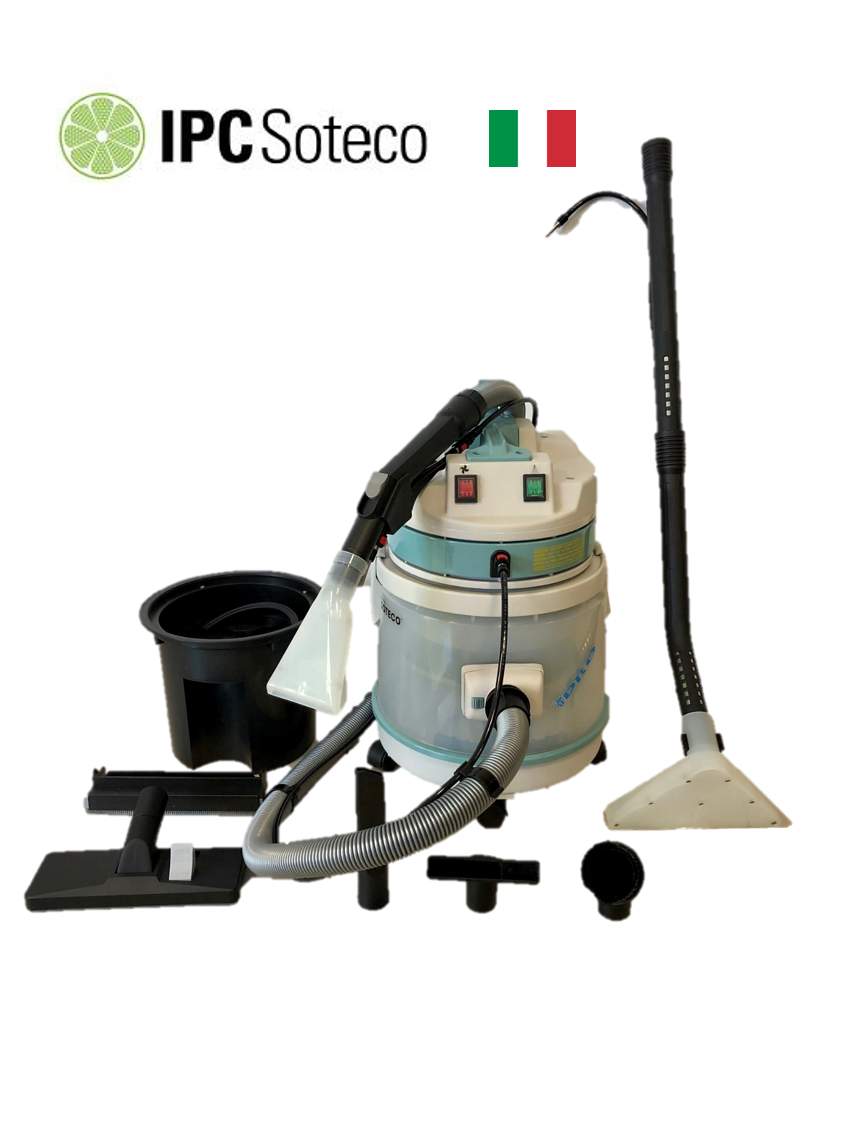 Máquina lava tapizados modelo Extractor Idrohippo (la más Robusta) de 1 motor fabricada por Soteco s.p.a integrante del IPC Group de origen italiano, (LAVA TAPIZADOS + ASPIRADORA LAS DOS OPCIONES!!!! ) especialmente diseñada para usos industriales continuos y para espacios reducidos con tanque de producto interno, brindando excelentes prestaciones de calidad y uso.